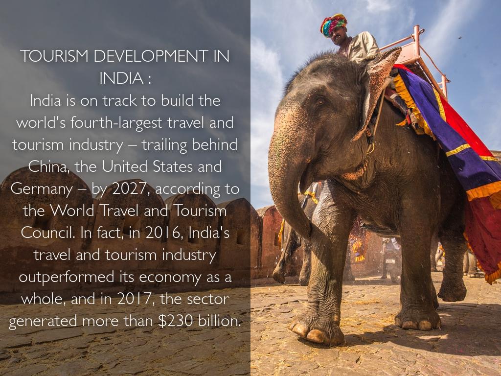 India is on track to build the world's fourth-largest travel and tourism industry – trailing behind China, the United States and Germany – by 2027, according to the World Travel and Tourism Council. In fact, in 2016, India's travel and tourism industry outperformed its economy as a whole, and in 2017, the sector generated more than $230 billion.