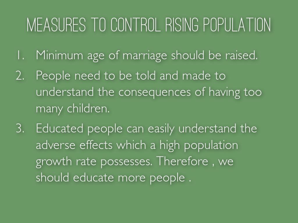 • Educated people can easily understand the adverse effects which a high population growth rate possesses. Therefore , we should educate more people .