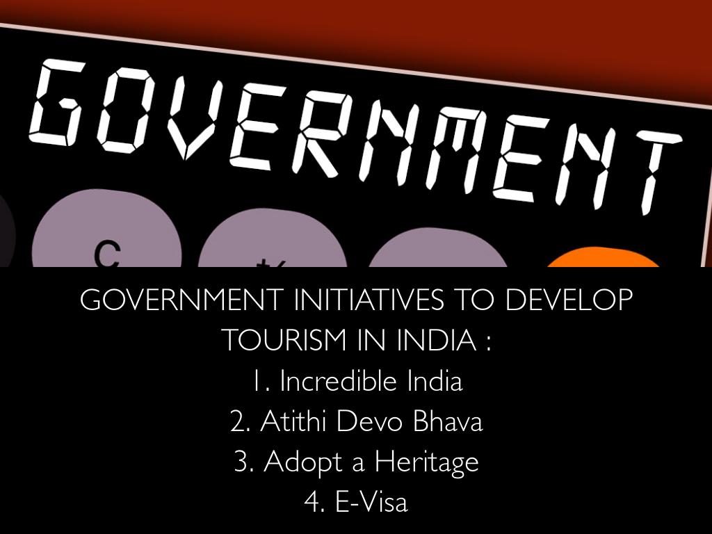 GOVERNMENT INITIATIVES TO DEVELOP TOURISM IN INDIA :