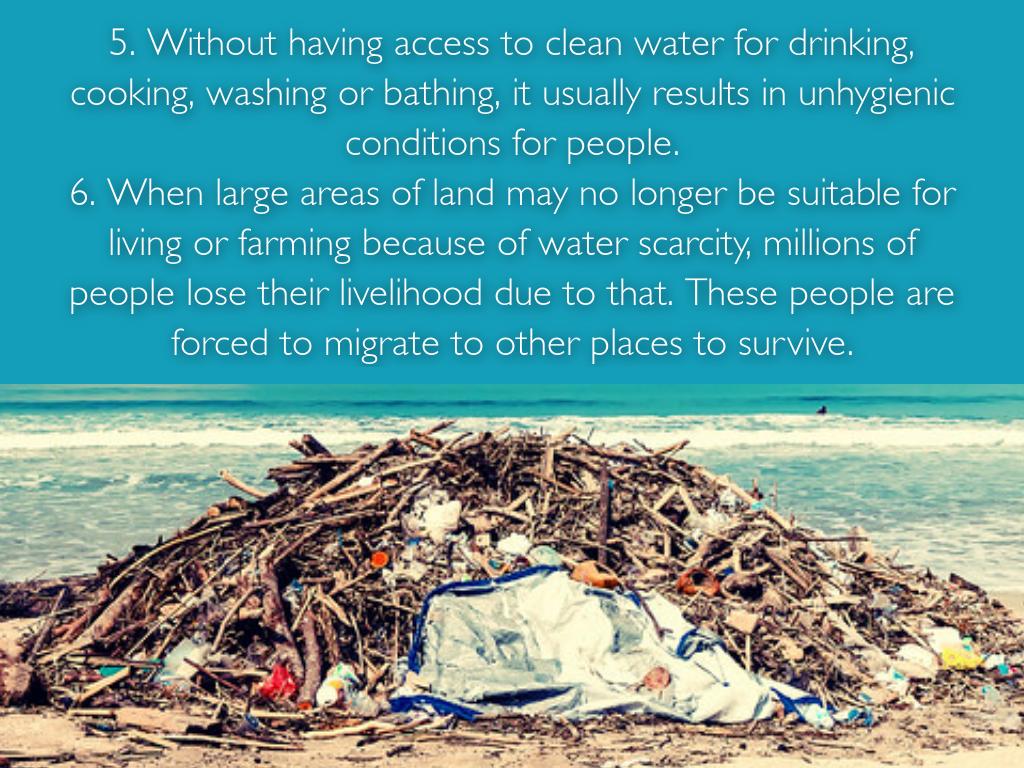 5. Without having access to clean water for drinking, cooking, washing or bathing, it usually results in unhygienic conditions for people.