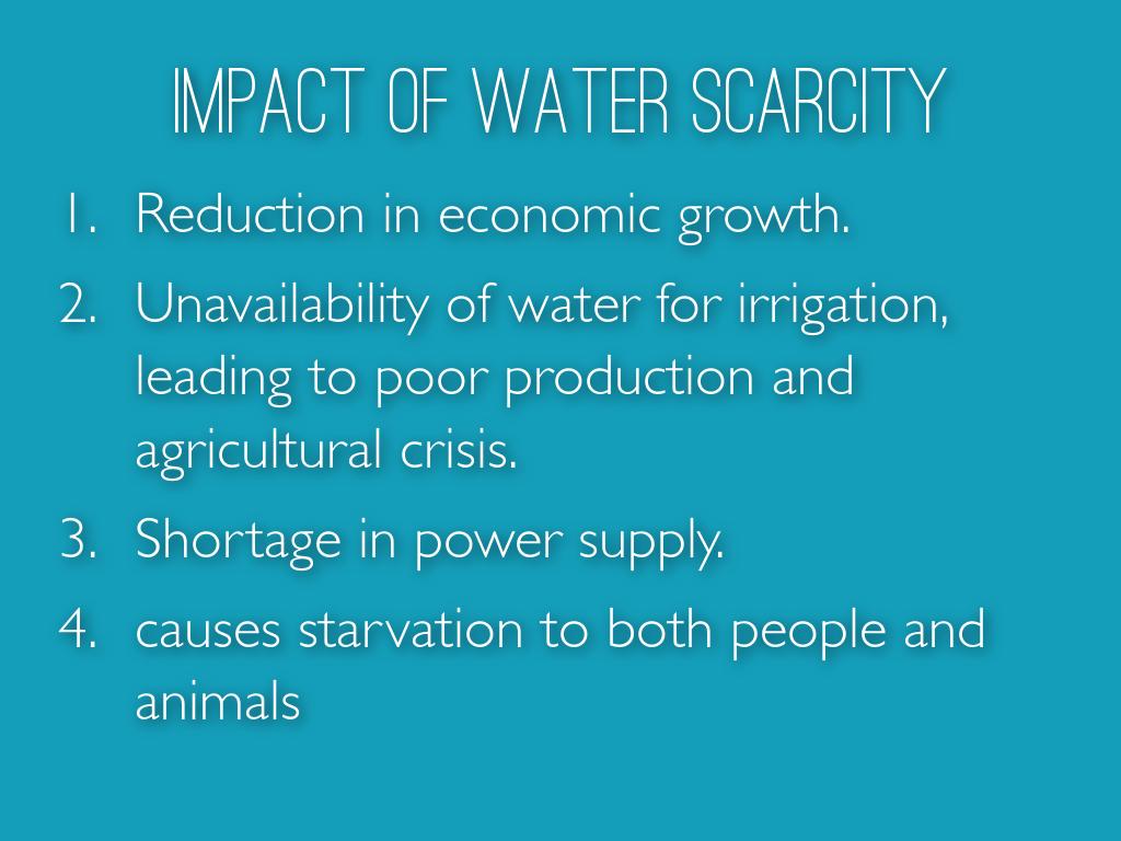 • Water scarcity is the cause of mismanagement and excess population growth of the water resources.