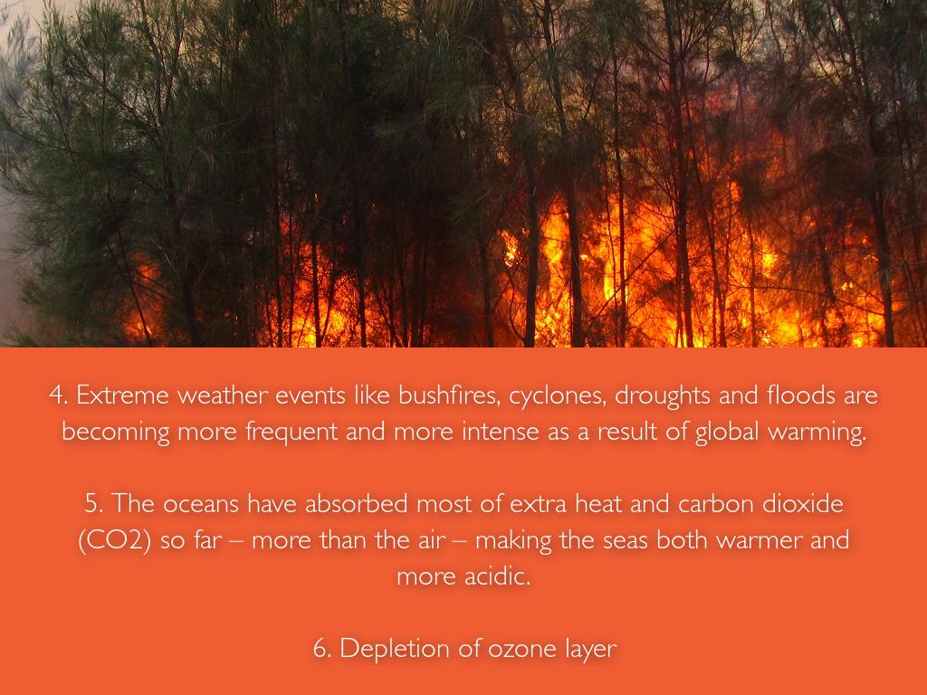 4. Extreme weather events like bushfires, cyclones, droughts and floods are becoming more frequent and more intense as a result of global warming.