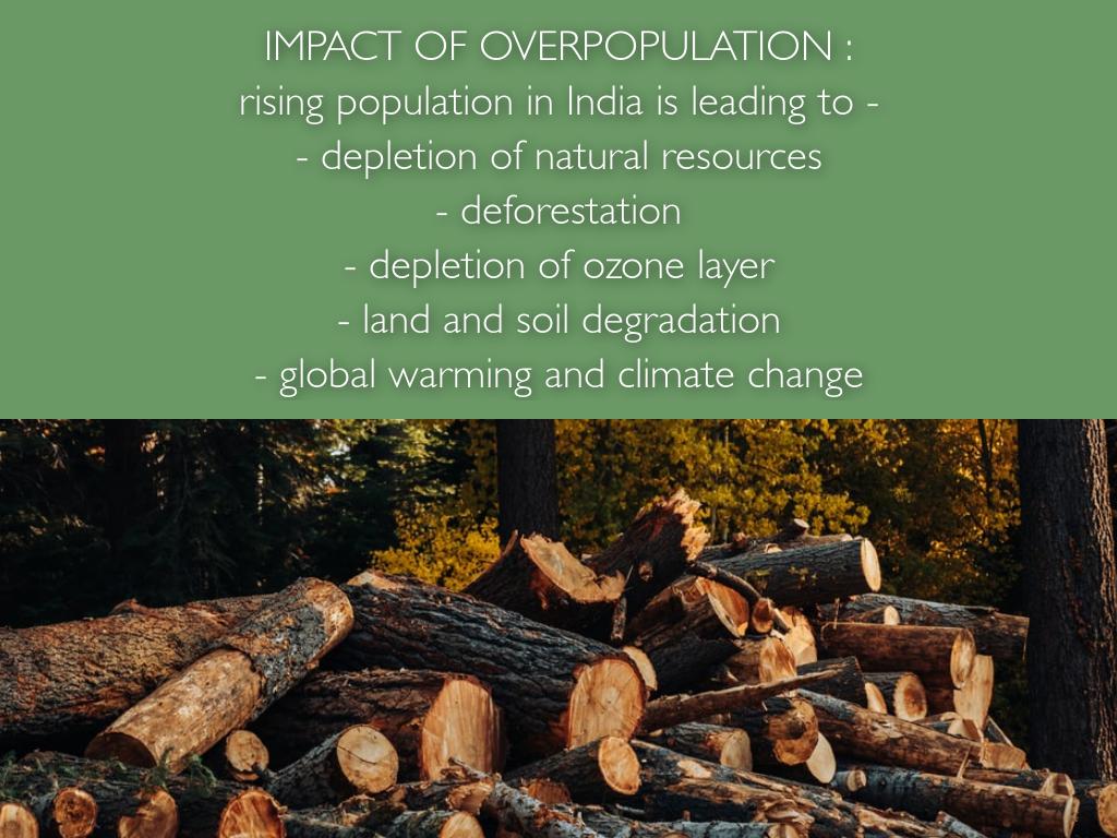 The rapid population growth and economic development in country are degrading the environment through the uncontrolled growth of urbanization and industrialization, expansion and intensification of agriculture, and the destruction of natural habitats. One of the major causes of environmental degradation in India could be attributed to rapid growth of population, which is adversely affecting the natural resources and environment.