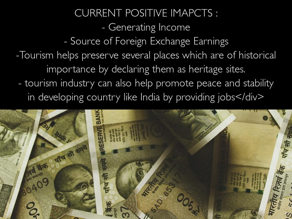 - tourism industry can also help promote peace and stability in developing country like India by providing jobs