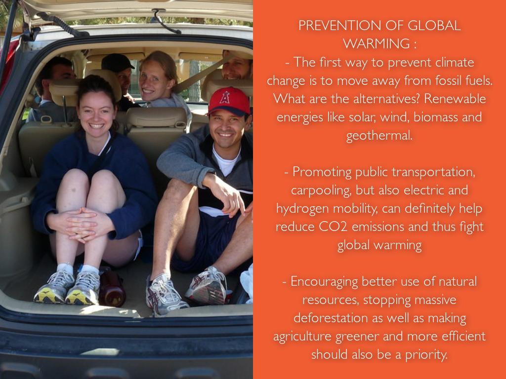 - Promoting public transportation, carpooling, but also electric and hydrogen mobility, can definitely help reduce CO2 emissions and thus fight global warming