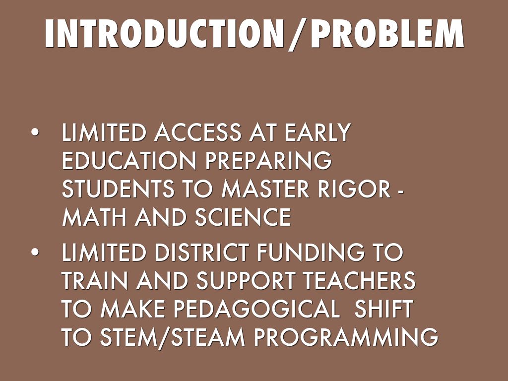 LIMITED DISTRICT FUNDING TO TRAIN AND SUPPORT TEACHERS TO MAKE PEDAGOGICAL SHIFT TO STEM/STEAM PROGRAMMING