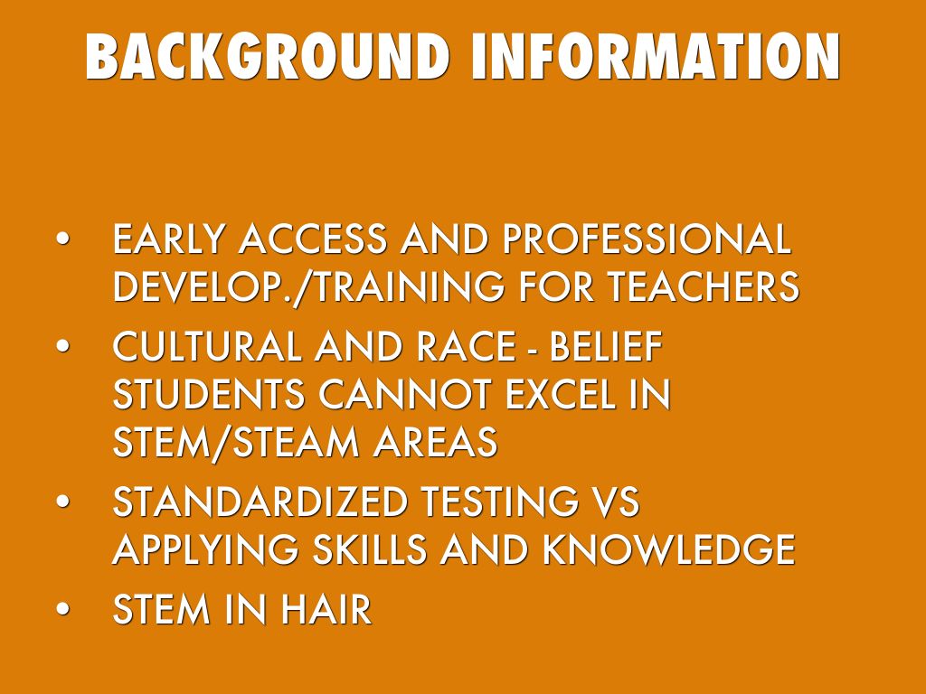 CULTURAL AND RACE - BELIEF STUDENTS CANNOT EXCEL IN STEM/STEAM AREAS
