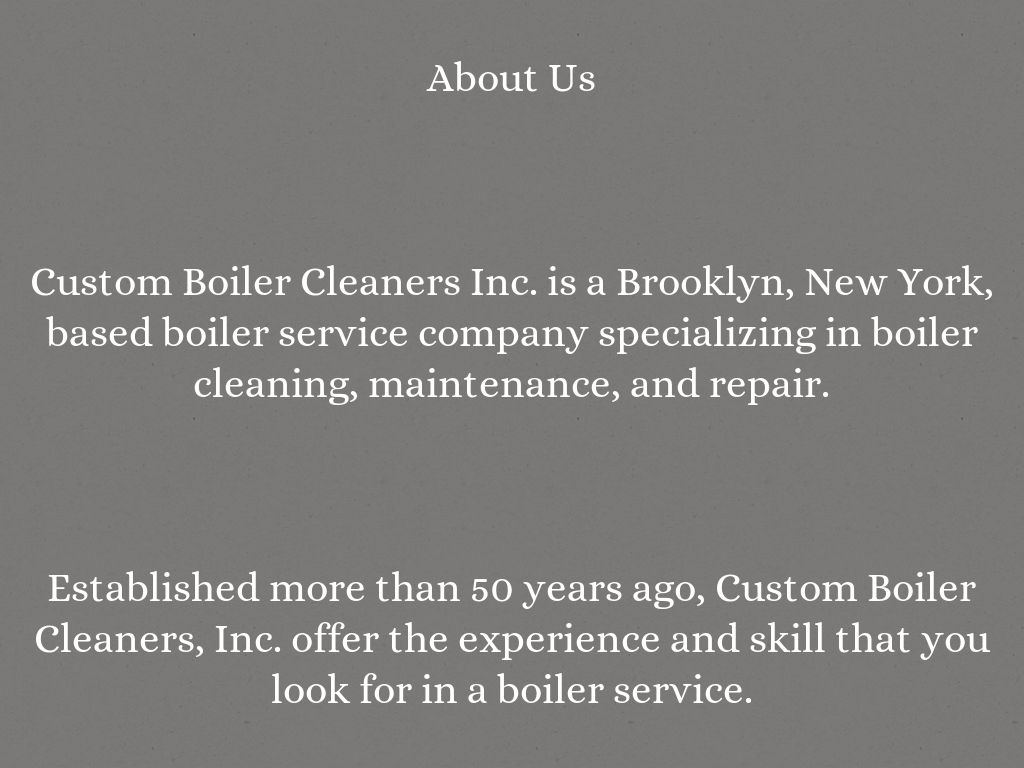 Custom Boiler Cleaners Inc. is a Brooklyn, New York, based boiler service company specializing in boiler cleaning, maintenance, and repair.