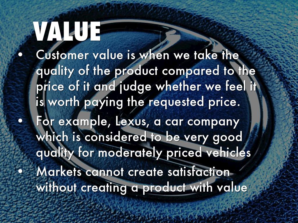Customer value is when we take the quality of the product compared to the price of it and judge whether we feel it is worth paying the requested price.