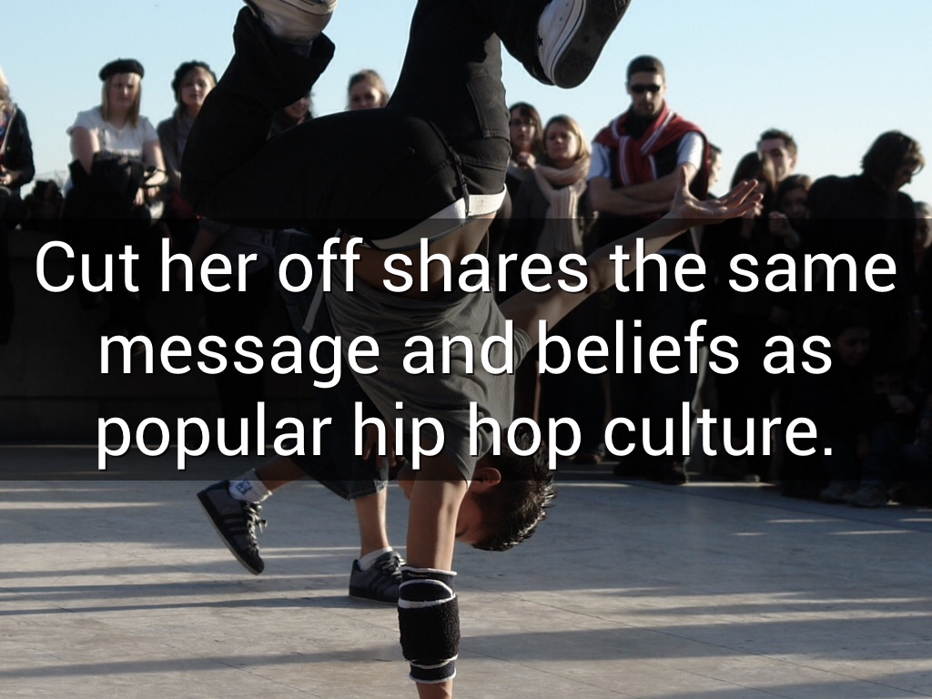 Cut her off shares the same message and beliefs as popular hip hop culture.
