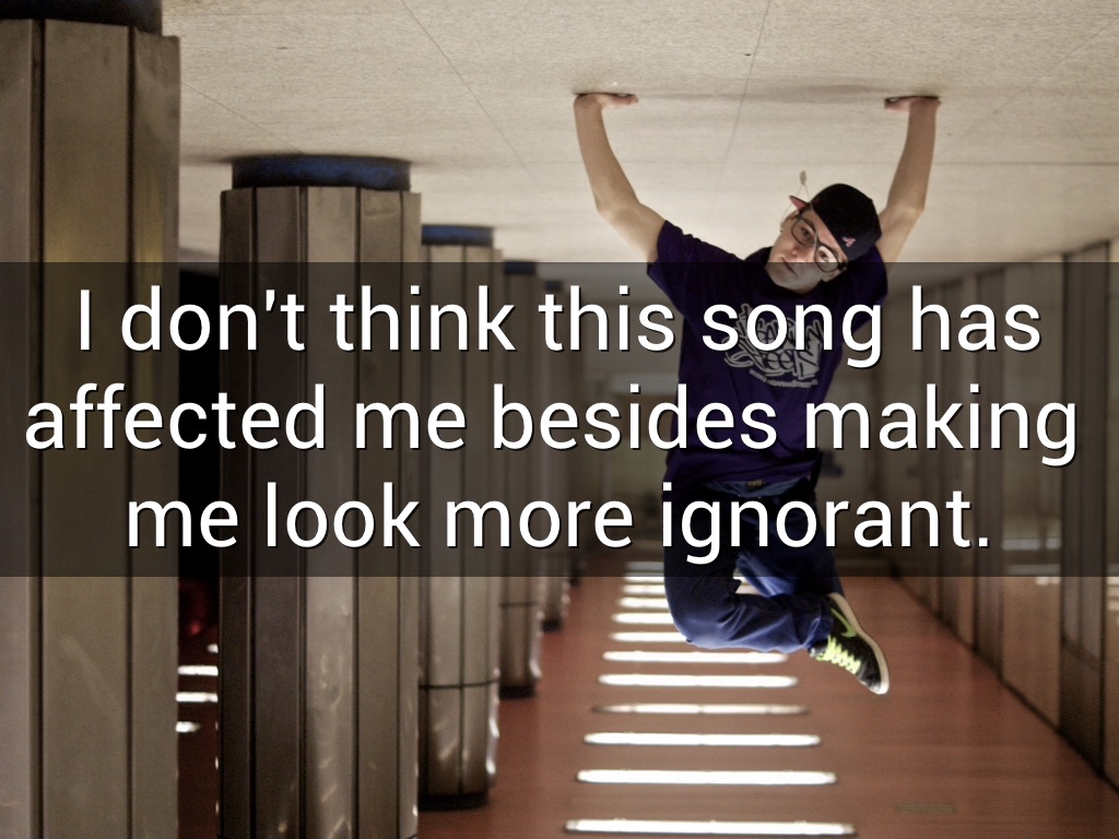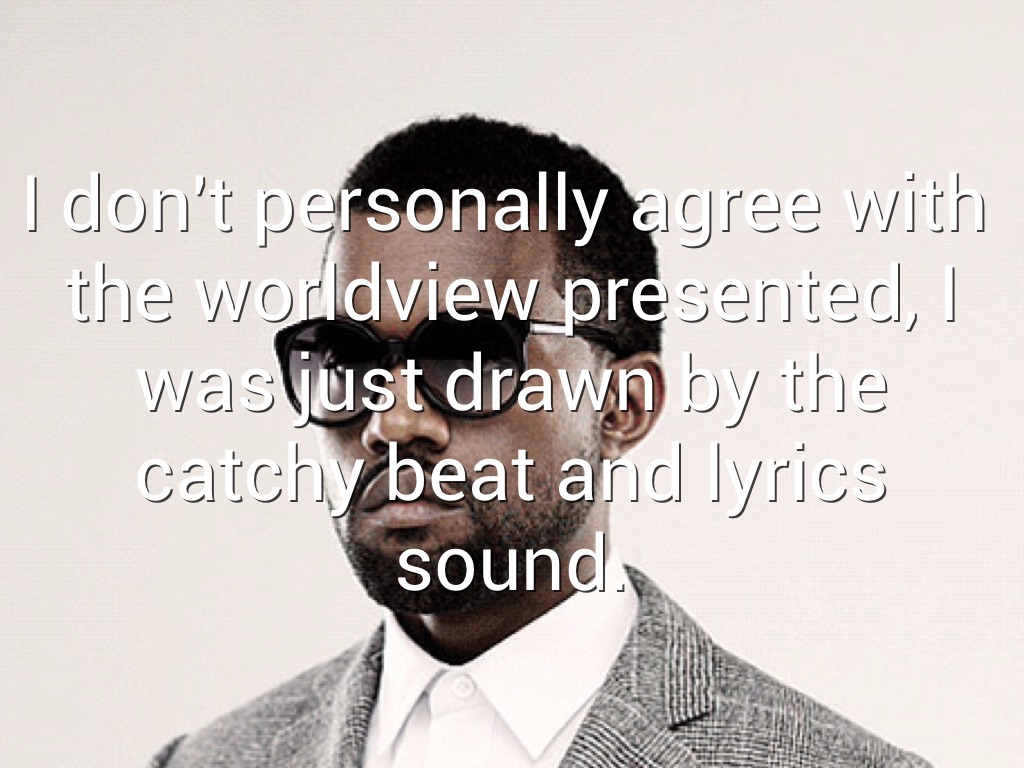I don't personally agree with the worldview presented, I was just drawn by the catchy beat and lyrics sound.