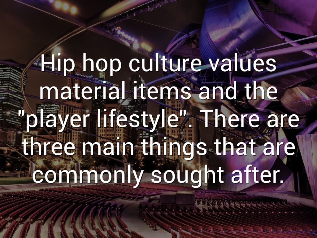 Hip hop culture values material items and the "player lifestyle". There are three main things that are commonly sought after.