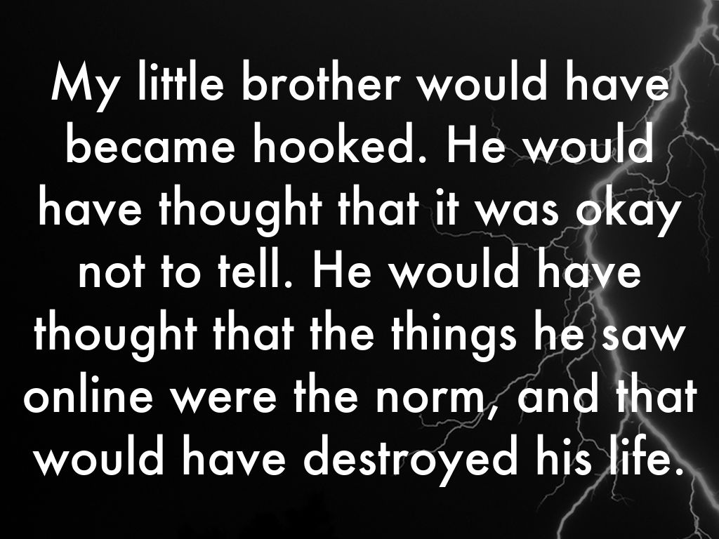 My little brother would have became hooked. He would have thought that it was okay not to tell. He would have thought that the things he saw online were the norm, and that would have destroyed his life.