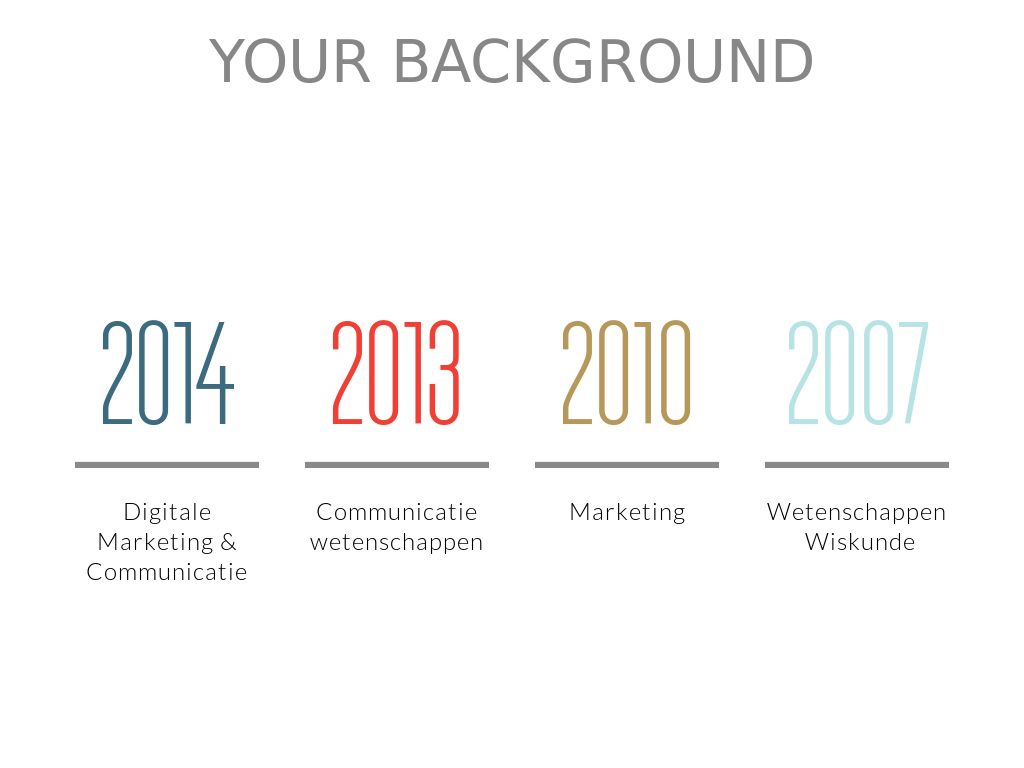 Again, you can choose how much detail you want to include (year is optional), or add multiple slides to highlight different degrees, but be sure to call out your academic achievements.
