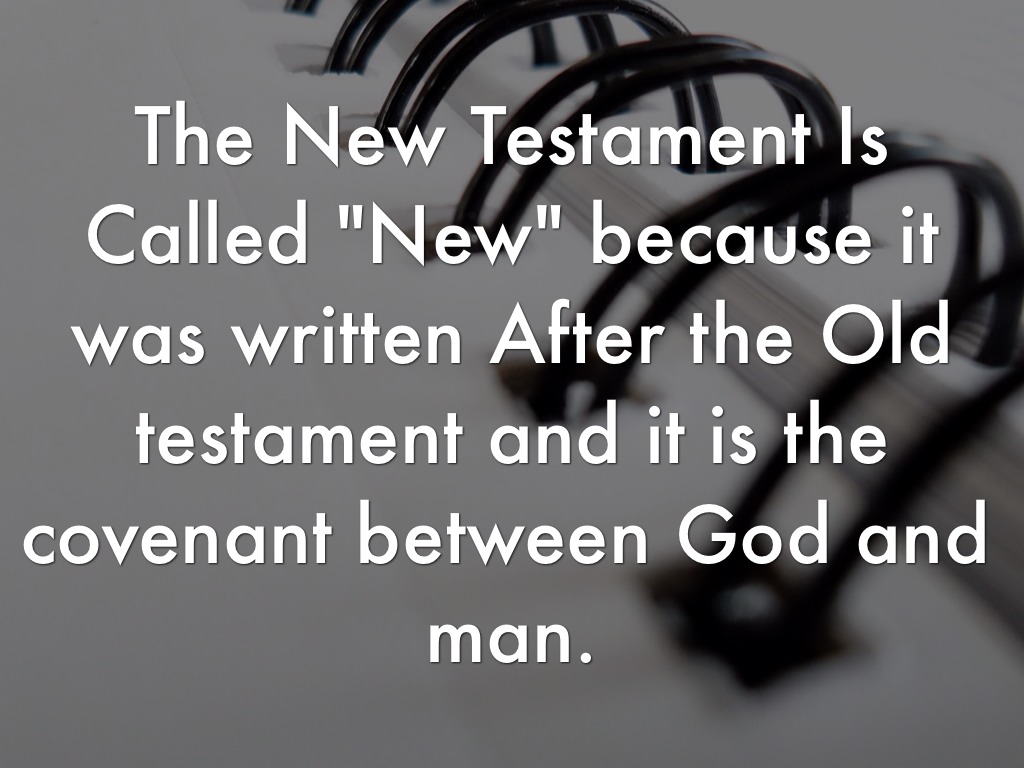 The New Testament Is Called "New" because it was written After the Old testament and it is the covenant between God and man.