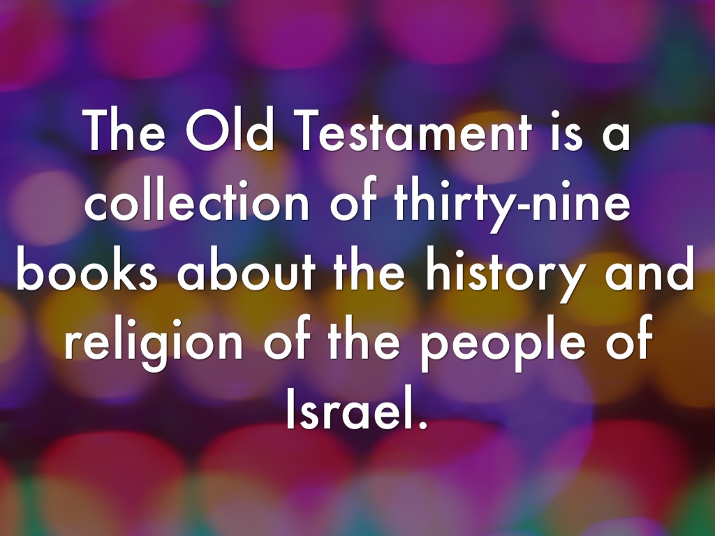 The Old Testament is a collection of thirty-nine books about the history and religion of the people of Israel.