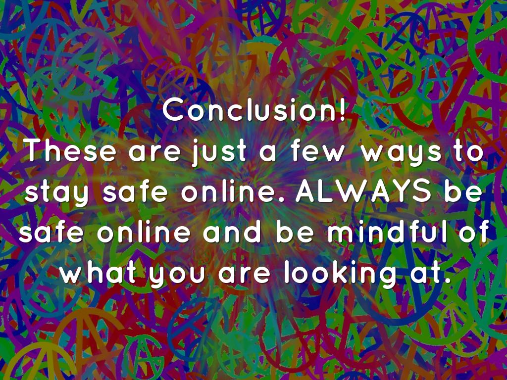 These are just a few ways to stay safe online. ALWAYS be safe online and be mindful of what you are looking at.