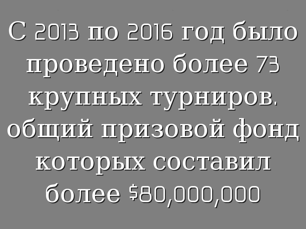 С 2013 по 2016 год было проведено более 73 крупных турниров.