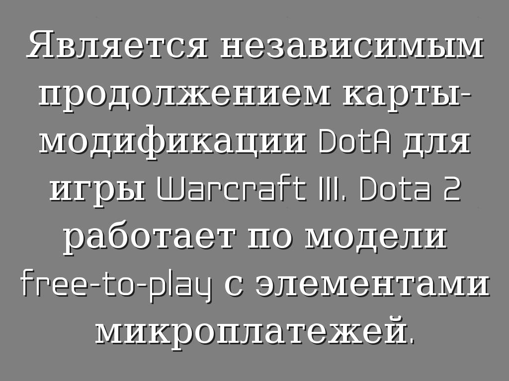 Является независимым продолжением карты-модификации DotA для игры Warcraft III. Dota 2 работает по модели free-to-play с элементами микроплатежей.