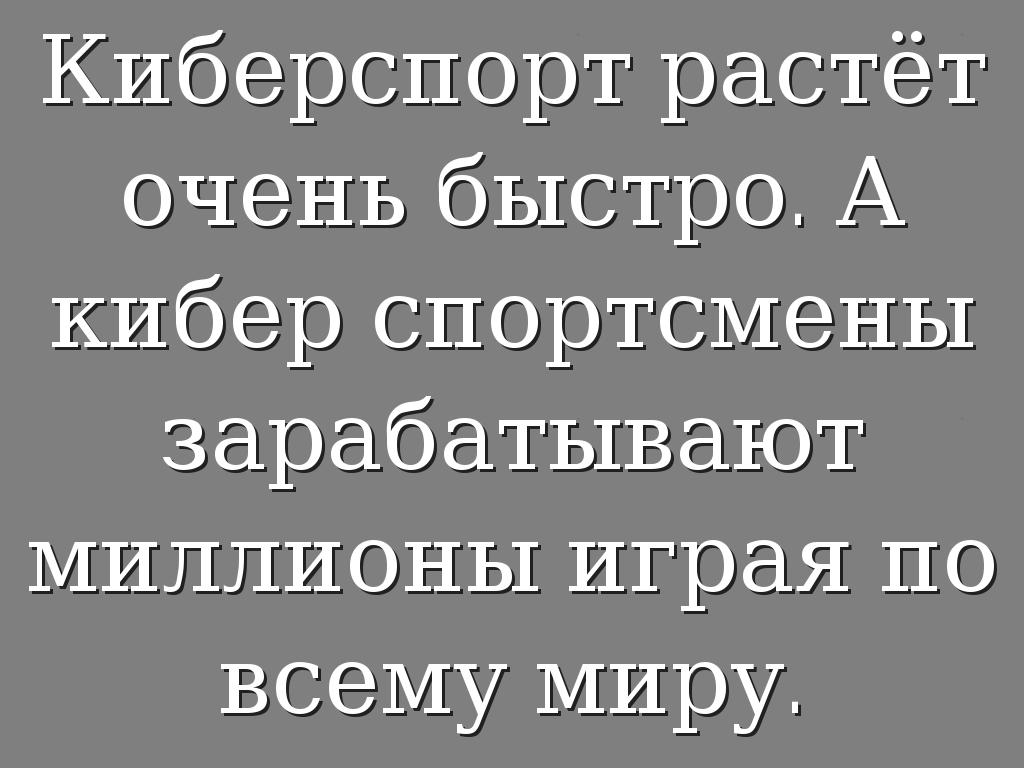 Киберспорт растёт очень быстро. А кибер спортсмены зарабатывают миллионы играя по всему миру.