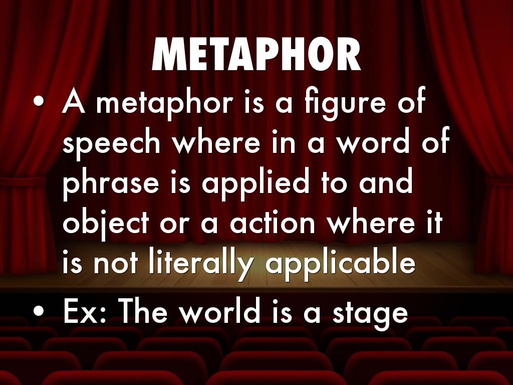 A metaphor is a figure of speech where in a word of phrase is applied to and object or a action where it is not literally applicable