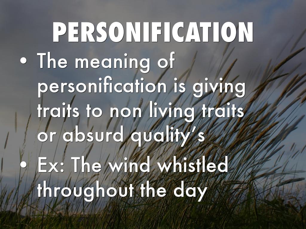 The meaning of personification is giving traits to non living traits or absurd quality’s