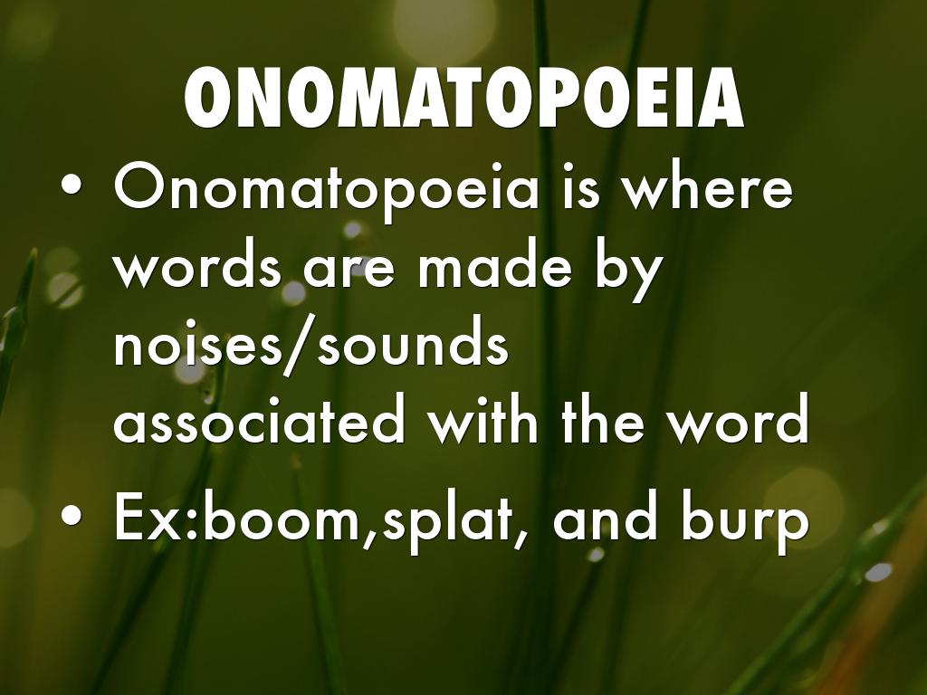 Onomatopoeia is where words are made by noises/sounds associated with the word