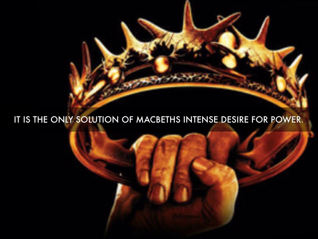 IT IS THE ONLY SOLUTION OF MACBETHS INTENSE DESIRE FOR POWER.
