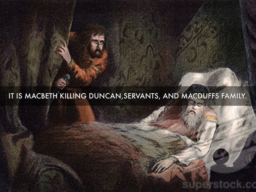 IT IS MACBETH KILLING DUNCAN,SERVANTS, AND MACDUFFS FAMILY.