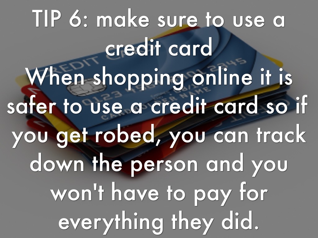 When shopping online it is safer to use a credit card so if you get robed, you can track down the person and you won't have to pay for everything they did.