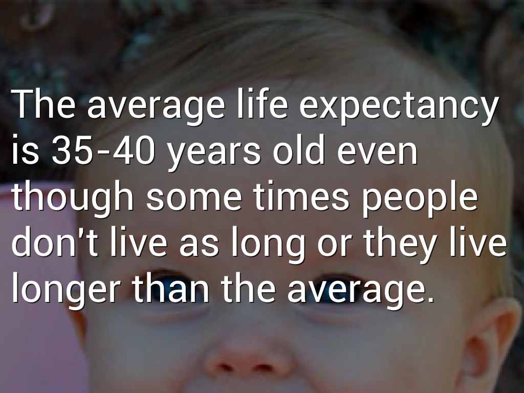 The average life expectancy is 35-40 years old even though some times people don't live as long or they live longer than the average.