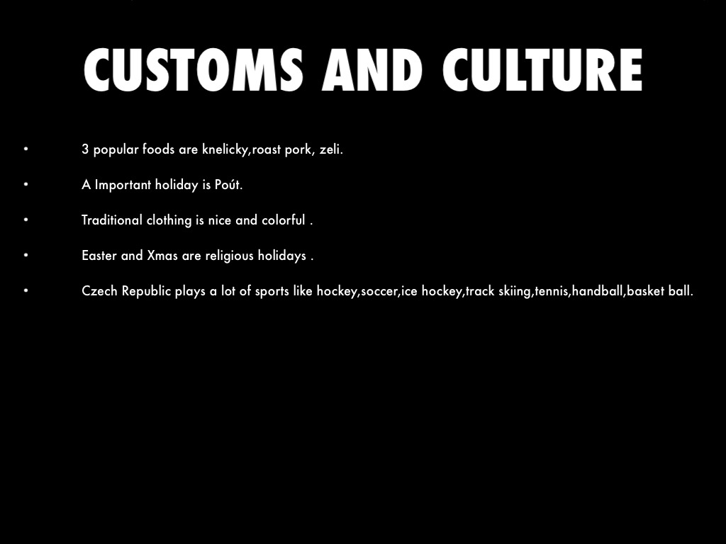 Czech Republic plays a lot of sports like hockey,soccer,ice hockey,track skiing,tennis,handball,basket ball.