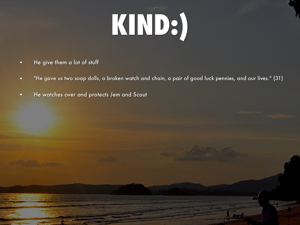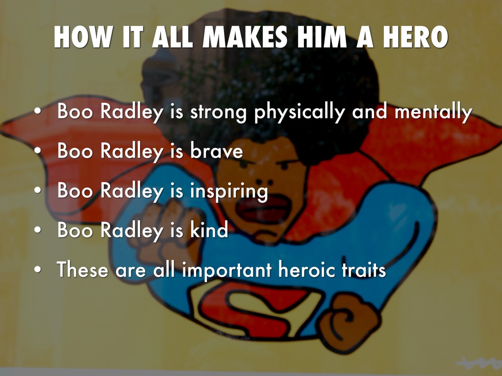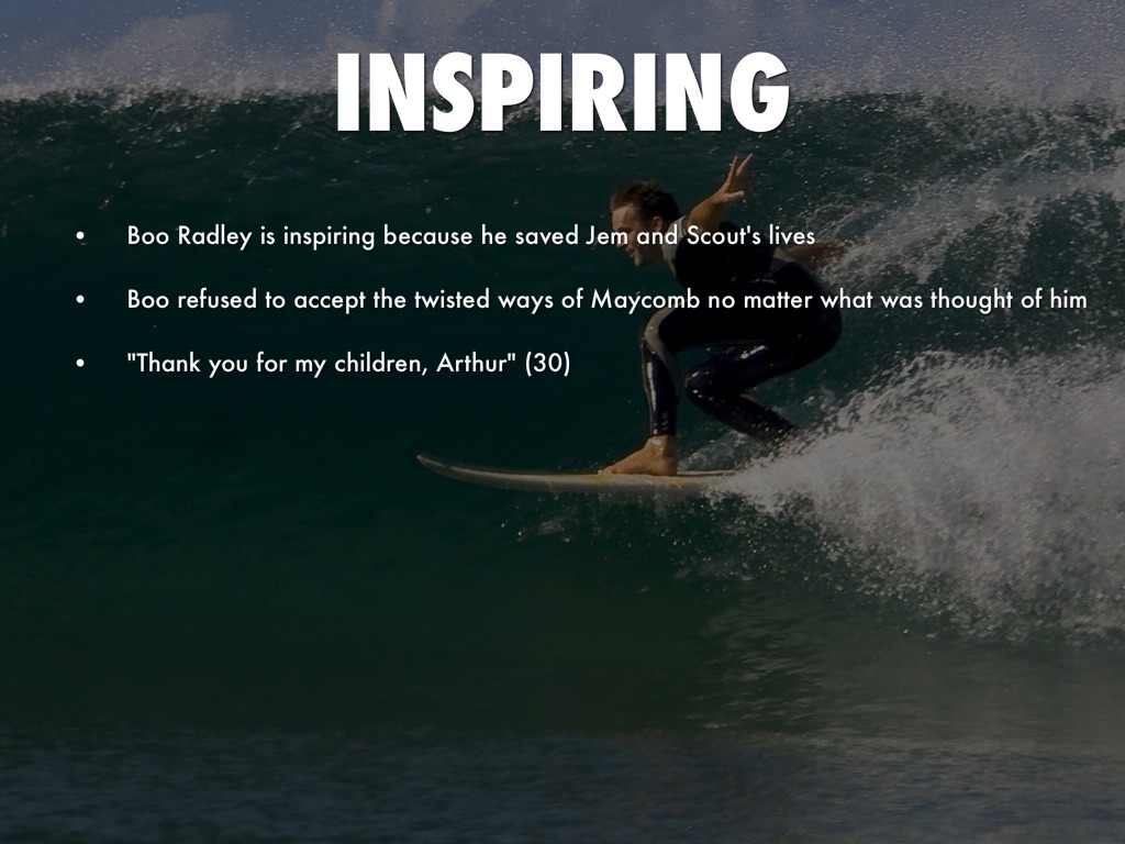 Boo Radley is inspiring because he saved Jem and Scout's lives
