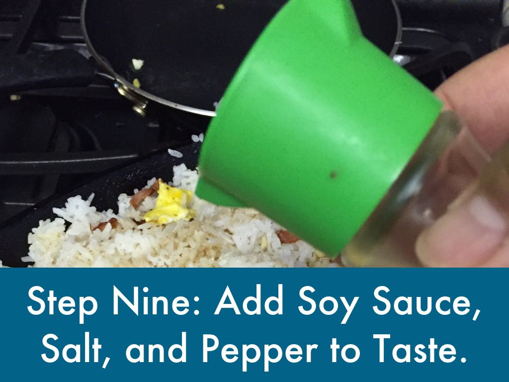 Step Nine: Add Soy Sauce, Salt, and Pepper to Taste.