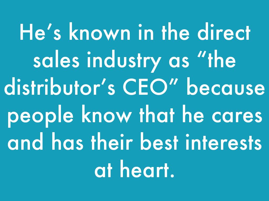 He’s known in the direct sales industry as “the distributor’s CEO” because people know that he cares and has their best interests at heart.