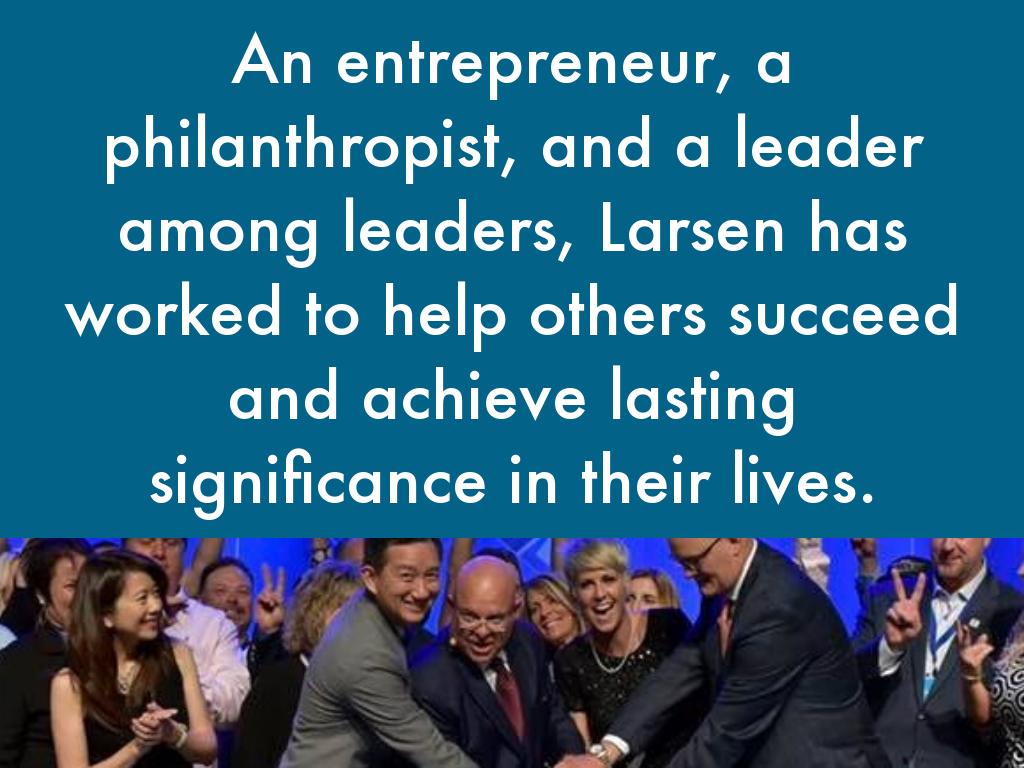 An entrepreneur, a philanthropist, and a leader among leaders, Larsen has worked to help others succeed and achieve lasting significance in their lives.