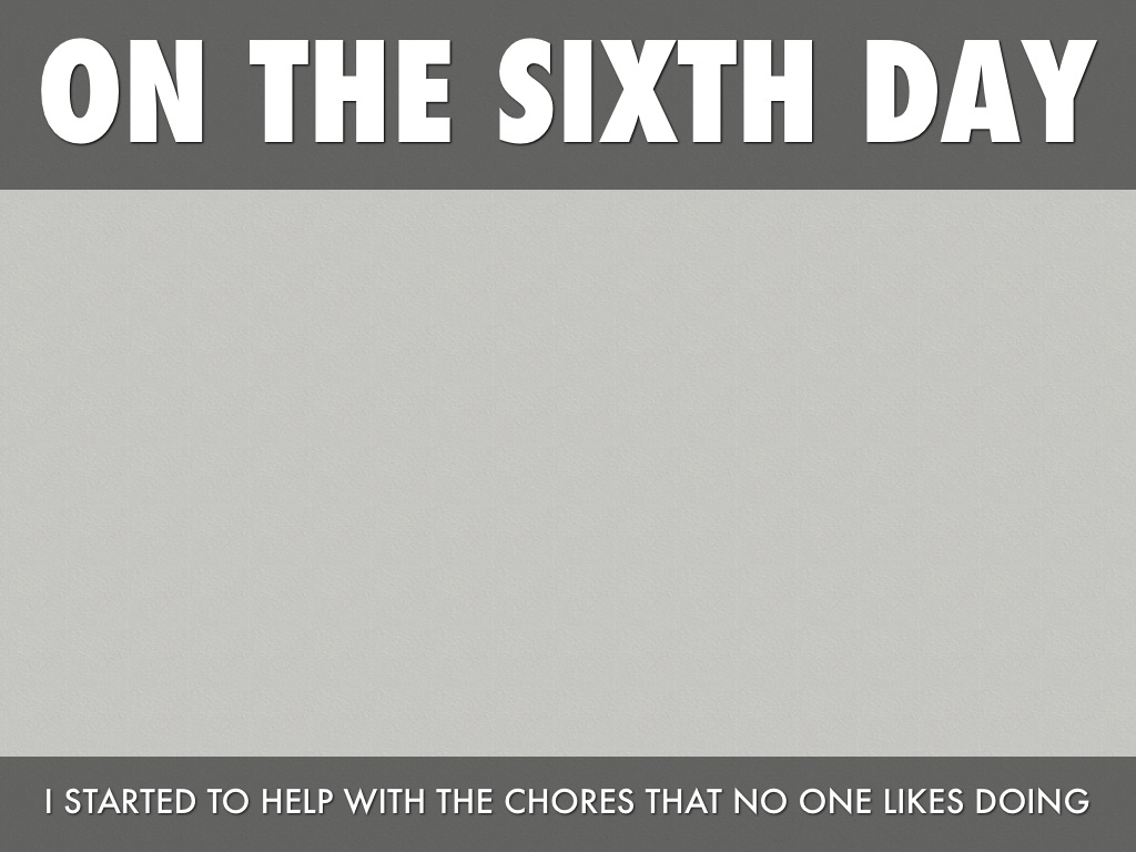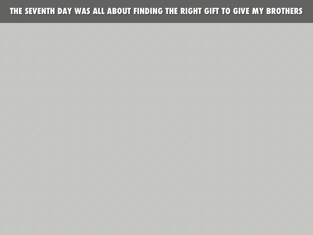 THE SEVENTH DAY WAS ALL ABOUT FINDING THE RIGHT GIFT TO GIVE MY BROTHERS