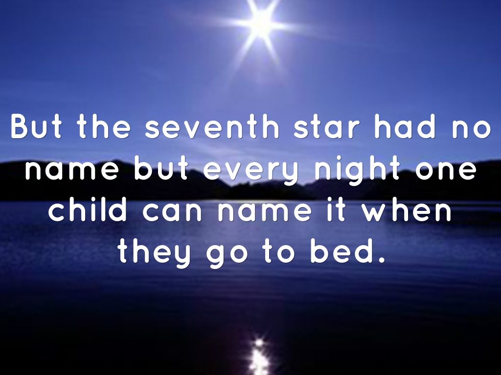 But the seventh star had no name but every night one child can name it when they go to bed.