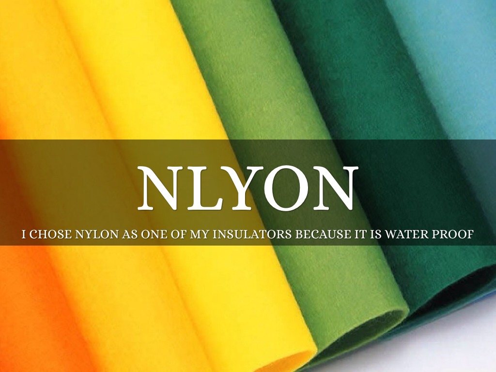 I CHOSE NYLON AS ONE OF MY INSULATORS BECAUSE IT IS WATER PROOF