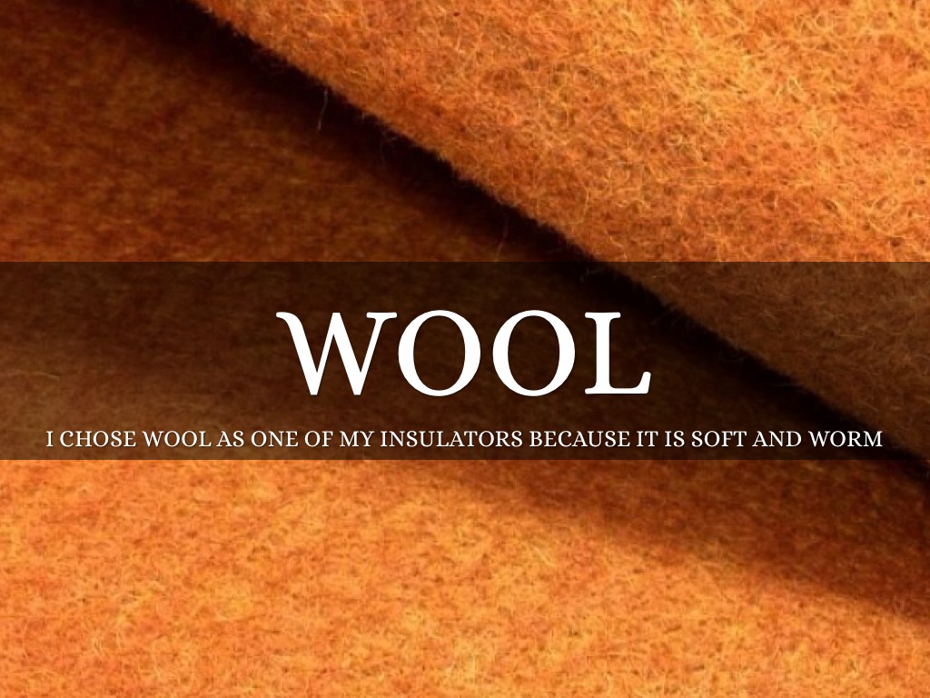 I CHOSE WOOL AS ONE OF MY INSULATORS BECAUSE IT IS SOFT AND WORM