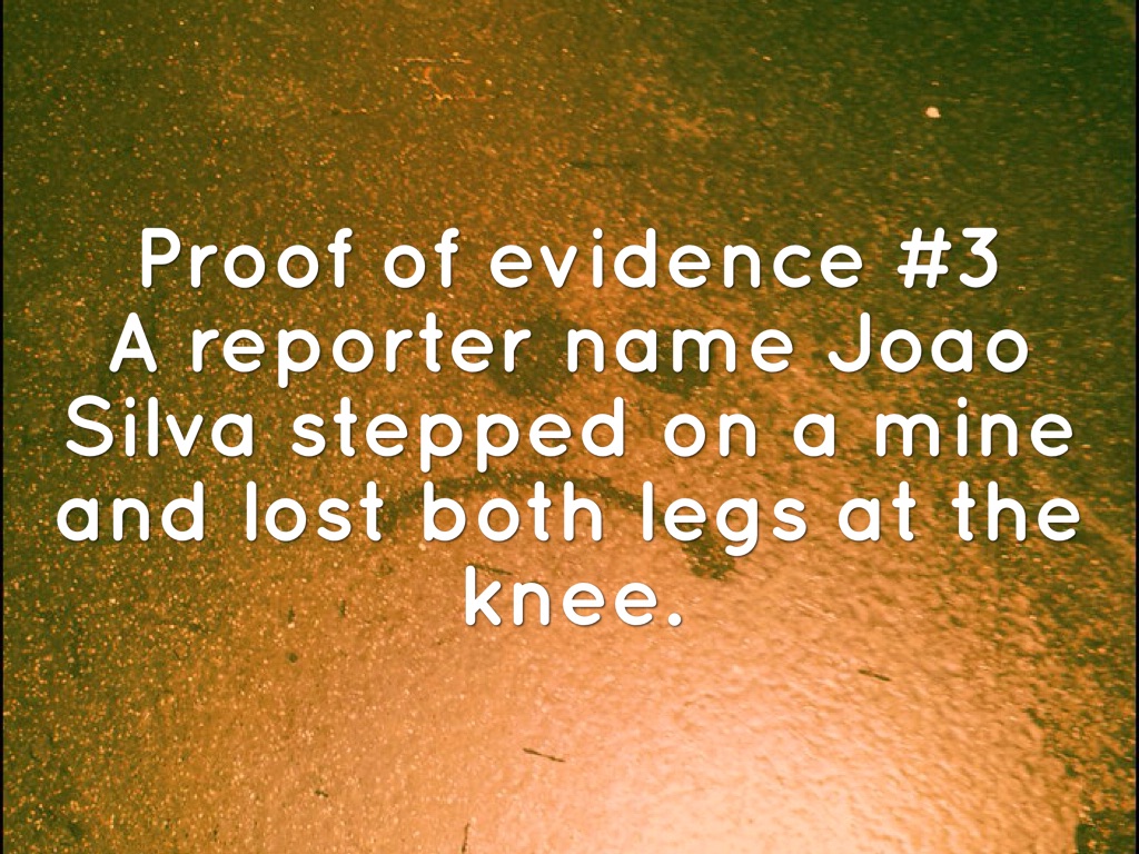 A reporter name Joao Silva stepped on a mine and lost both legs at the knee.