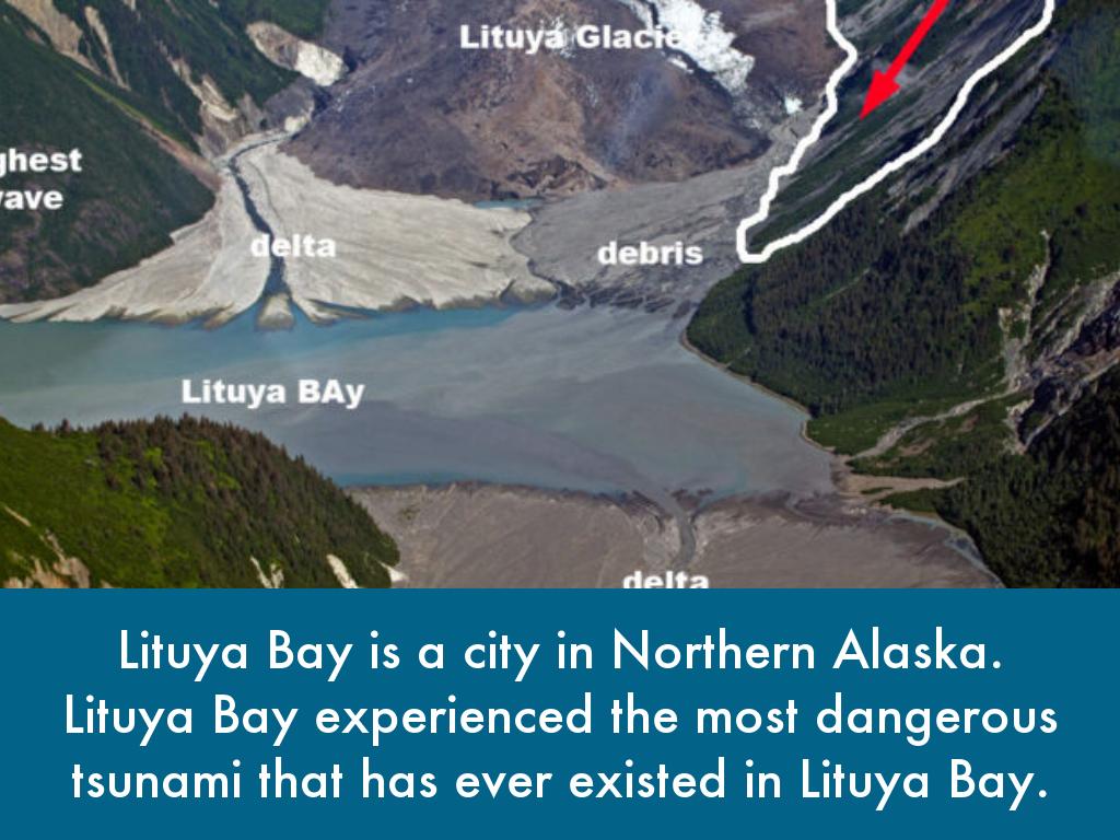 Lituya Bay is a city in Northern Alaska. Lituya Bay experienced the most dangerous tsunami that has ever existed in Lituya Bay.