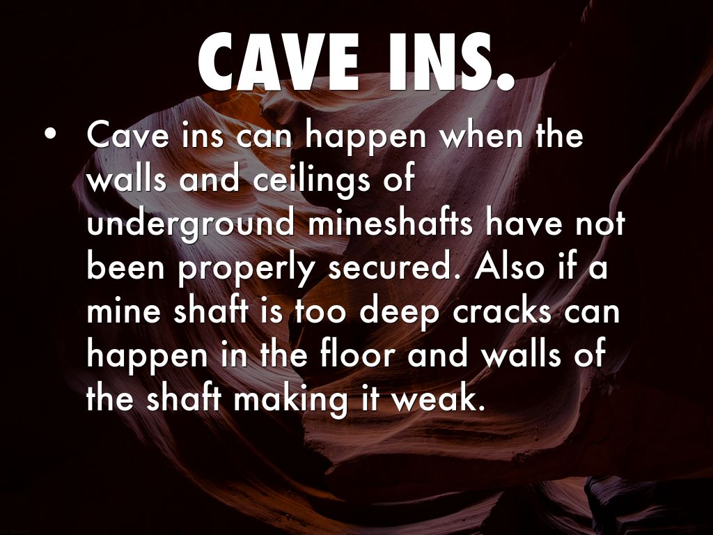 Cave ins can happen when the walls and ceilings of underground mineshafts have not been properly secured. Also if a mine shaft is too deep cracks can happen in the floor and walls of the shaft making it weak.