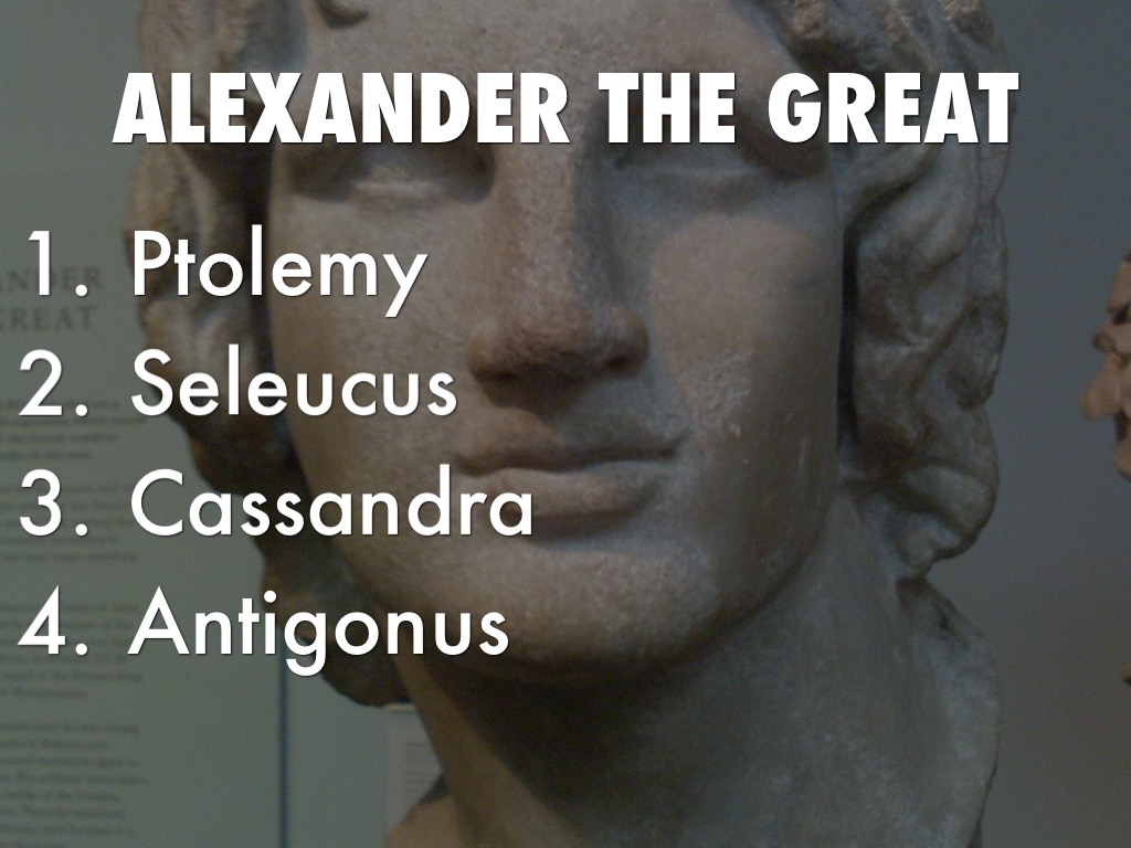 Alexander the Great died at an early age. His kingdom was divided between his 4 generals.
