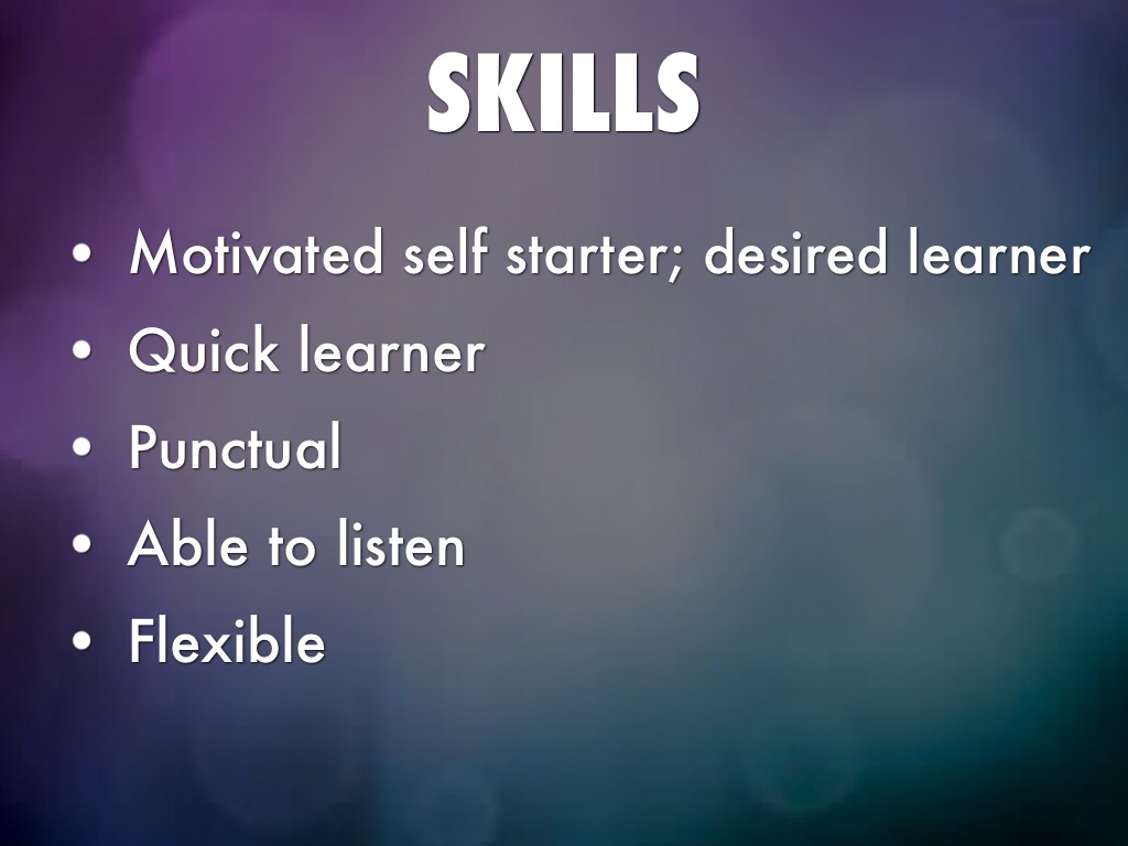 - Motivated self starter; desired learner