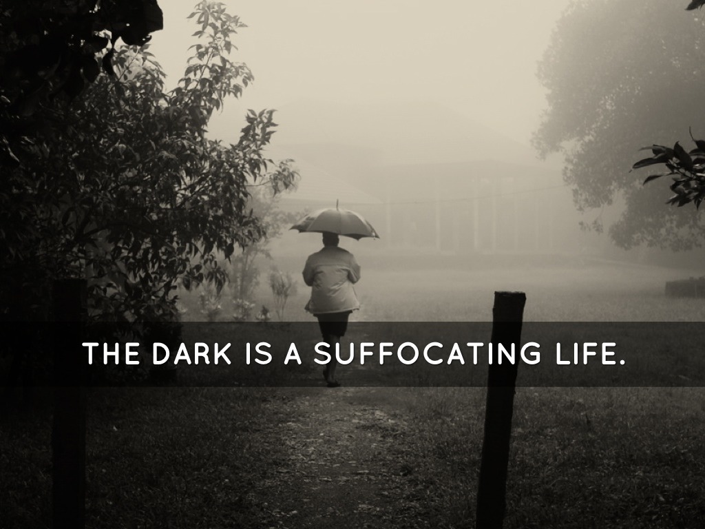 THE DARK IS ALL OF YOUR EMOTIONS, CLOSING IN ON YOU.