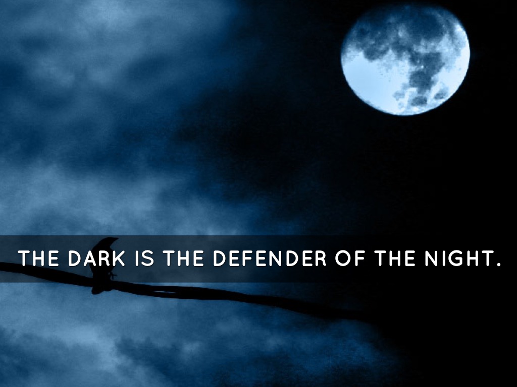 THE DARK IS THE DEFENDER OF THE NIGHT.