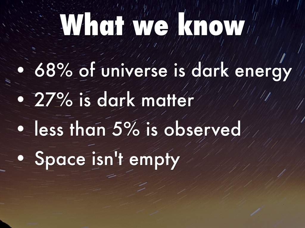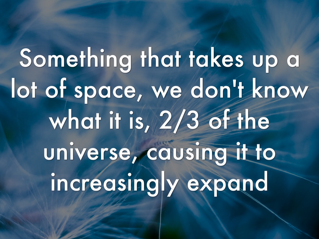Something that takes up a lot of space, we don't know what it is, 2/3 of the universe, causing it to increasingly expand