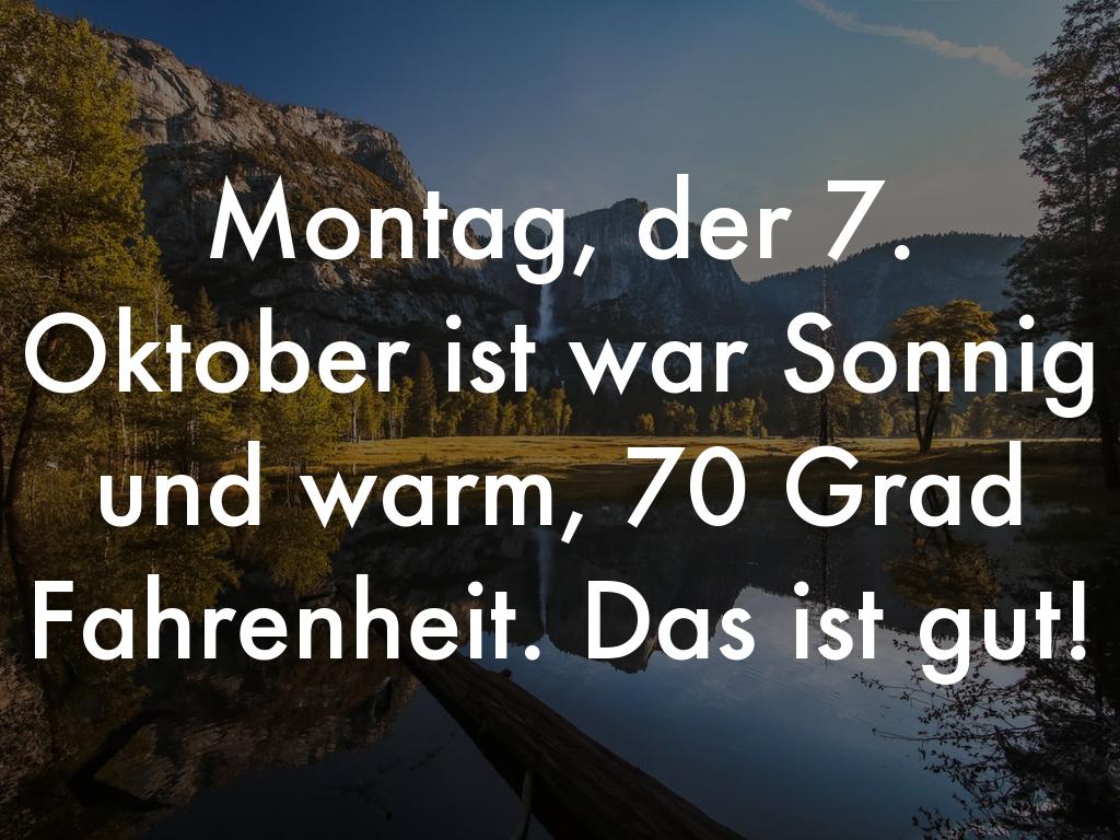 Montag, der 7. Oktober ist war Sonnig und warm, 70 Grad Fahrenheit. Das ist gut!