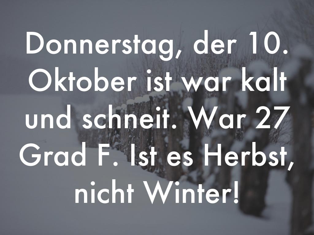 Donnerstag, der 10. Oktober ist war kalt und schneit. War 27 Grad F. Ist es Herbst, nicht Winter!